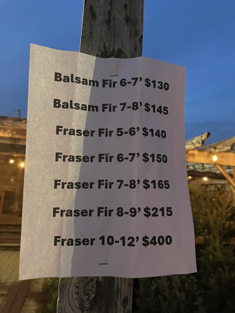 Frasier Fir 10-12′ : $400 (pre-order only)
